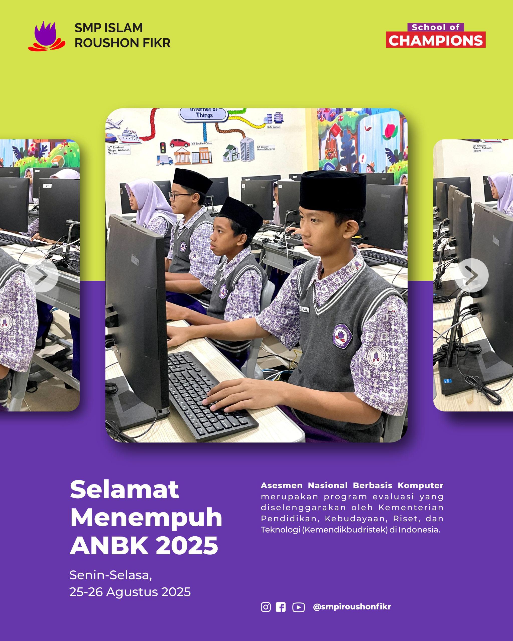 Pada Senin–Selasa, 25–26 Agustus 2025, siswa-siswi kelas 8 SMP Islam Roushon Fikr melaksanakan kegiatan Asesmen Nasional Berbasis Komputer (ANBK). Kegiatan ini berjalan dengan tertib dan lancar dengan dukungan dari proktor, teknisi, serta pengawas yang memastikan setiap sesi berlangsung sesuai ketentuan. …