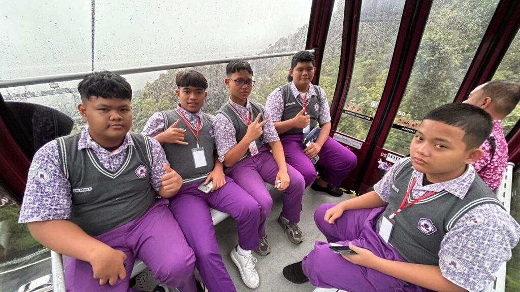 Genting Highlands merupakan kawasan wisata pegunungan yang terkenal dengan panorama alam yang indah serta udara yang sejuk. Di tempat ini, siswa-siswi berkesempatan menikmati pengalaman seru menaiki kereta gantung (cable car) sambil menyaksikan pemandangan menakjubkan dari ketinggian. Aktivitas ini menjadi momen yang tak terlupakan sekaligus menambah wawasan para siswa tentang pengelolaan wisata alam di negara Malaysia.